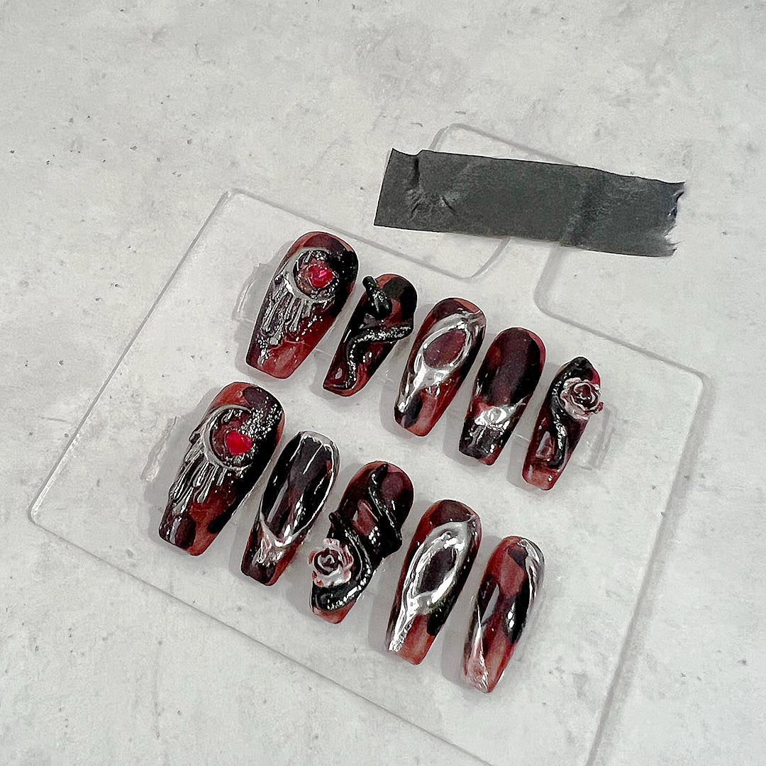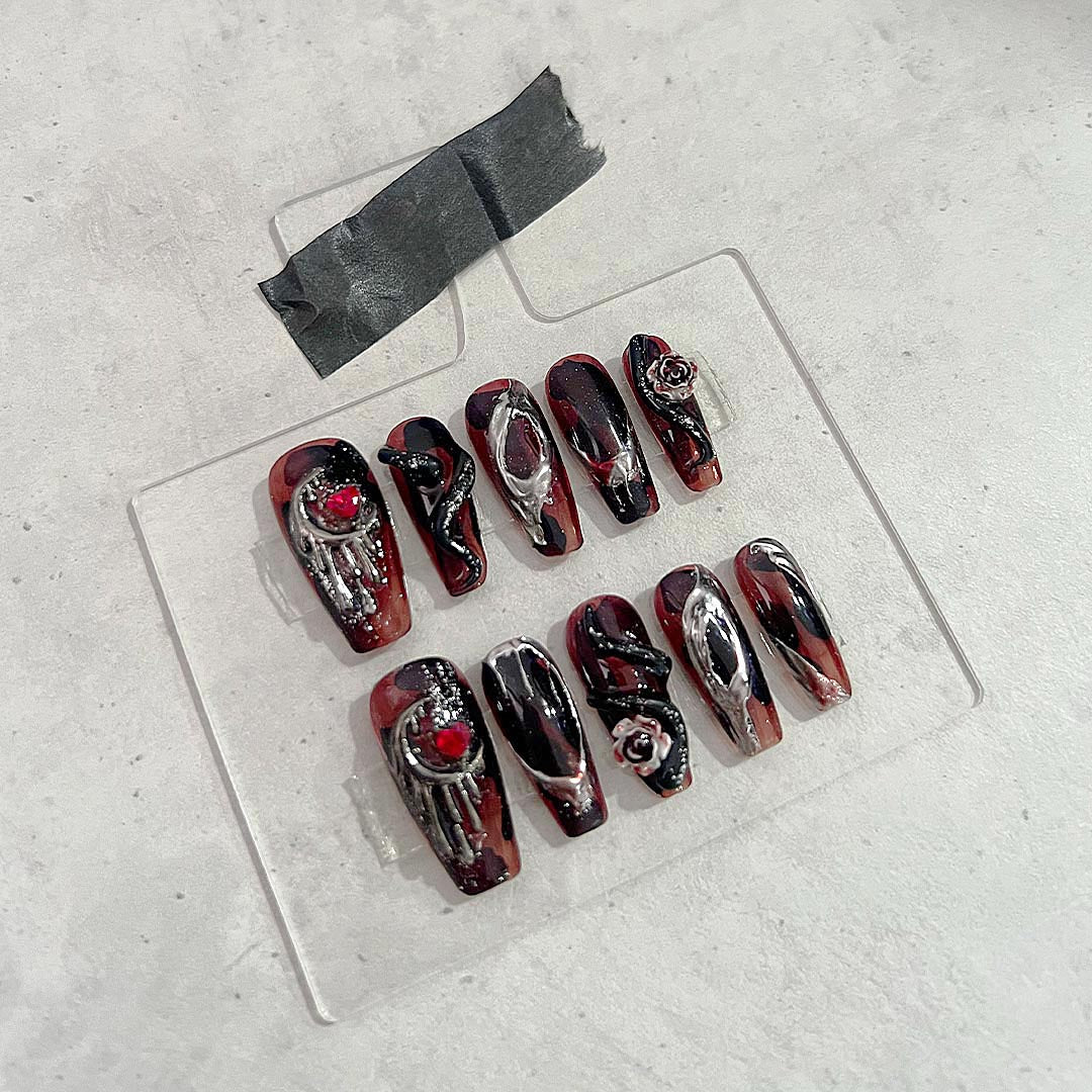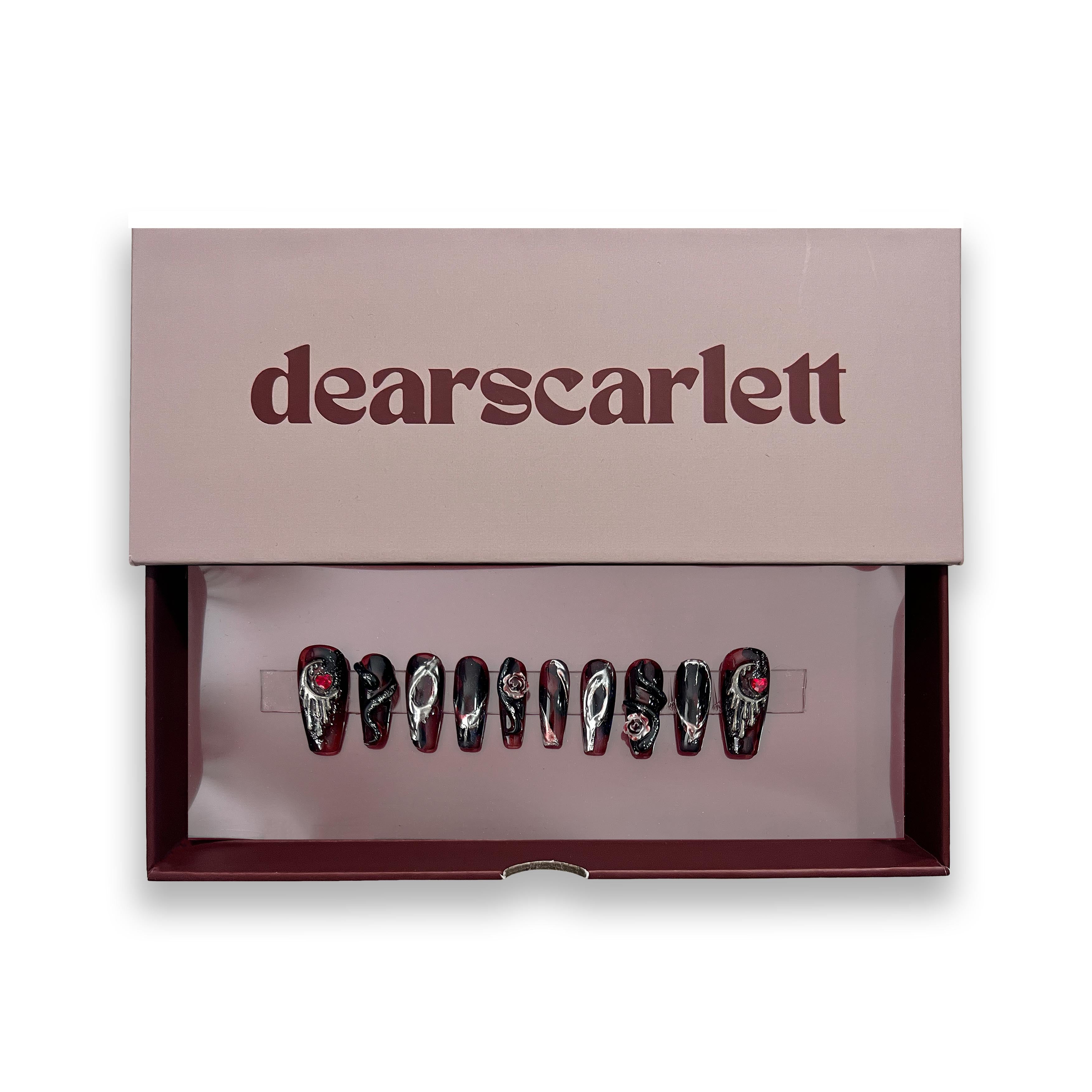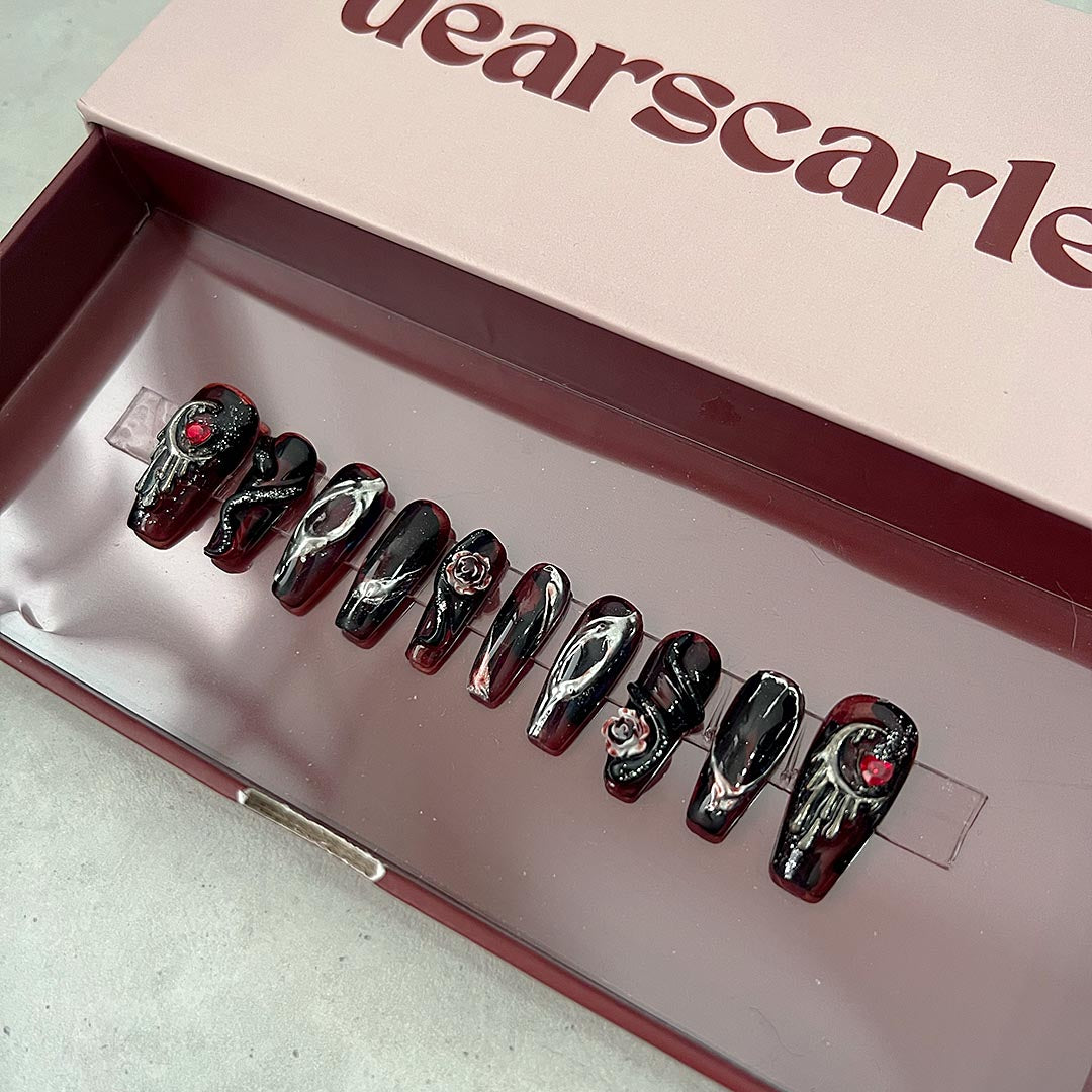 Vibrant crimson red with hints of chrome, and 3D charms for extra edge.