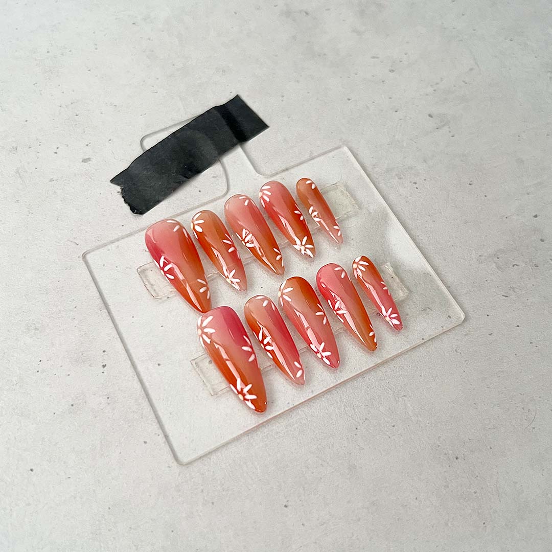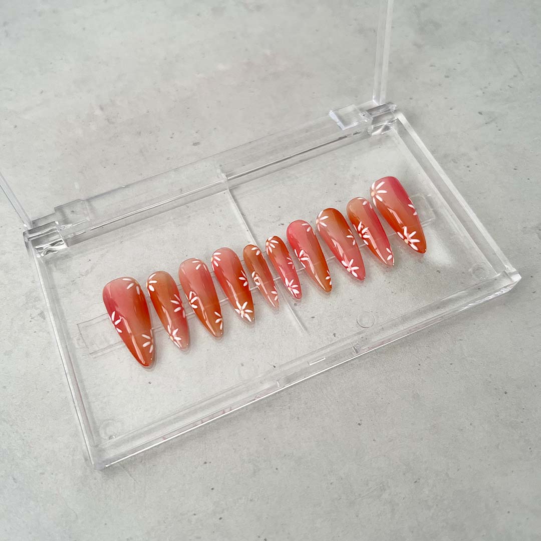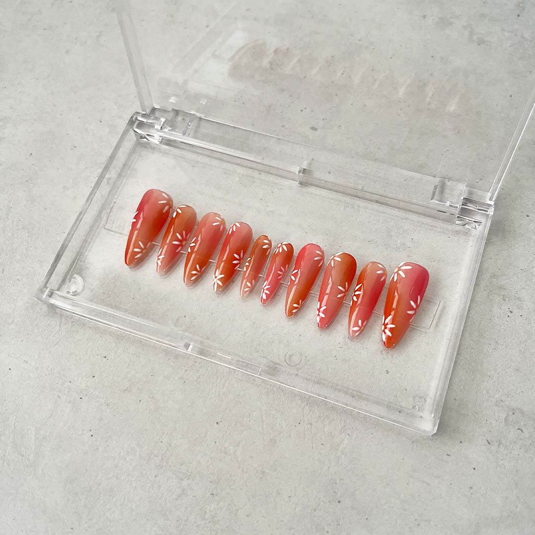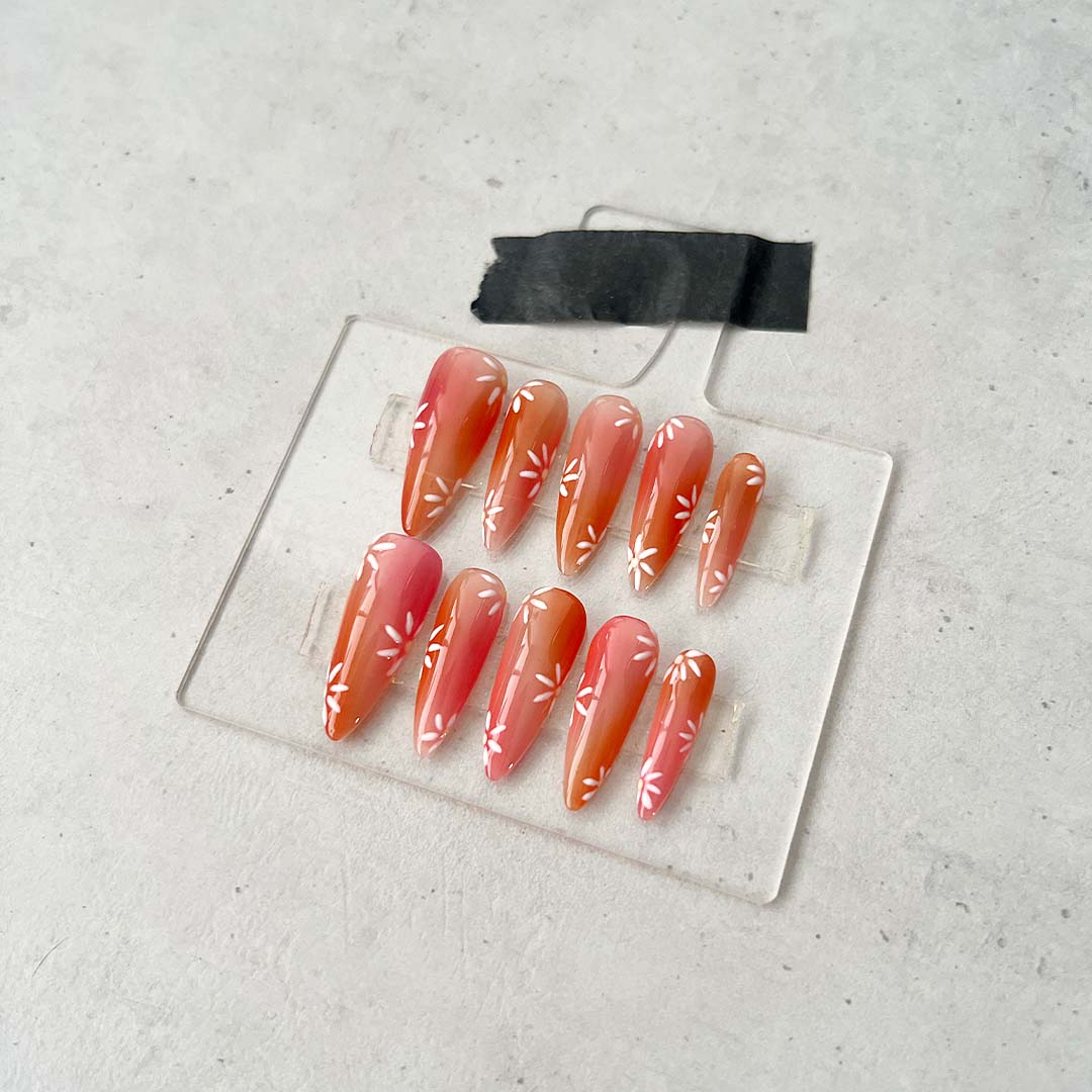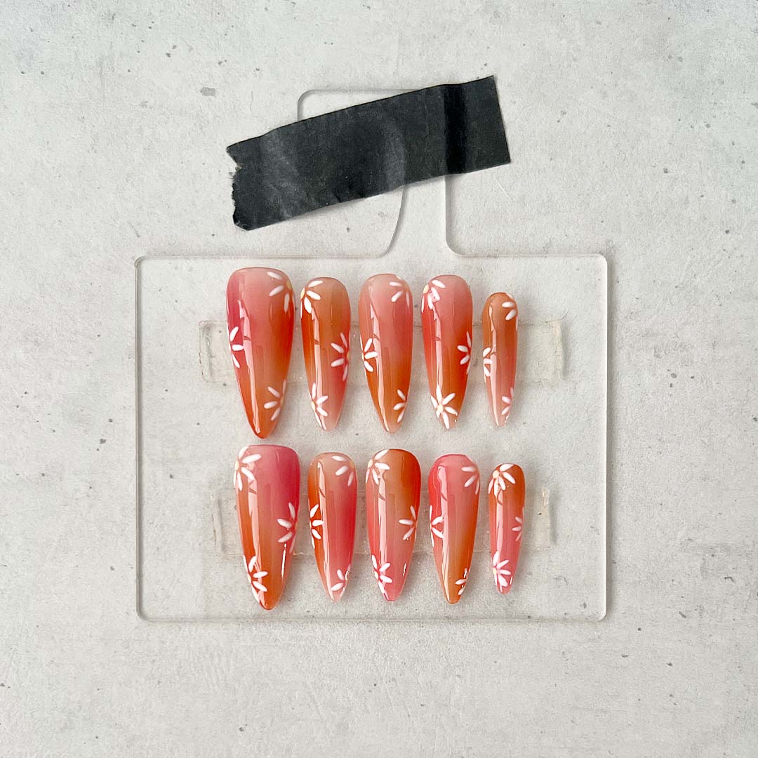 Add a splash of fun with a bright ombre blend of vibrant orange and pink, finished with little flowers to brighten your summer.