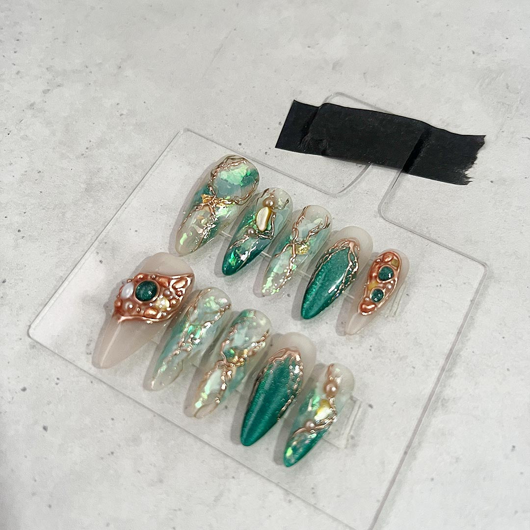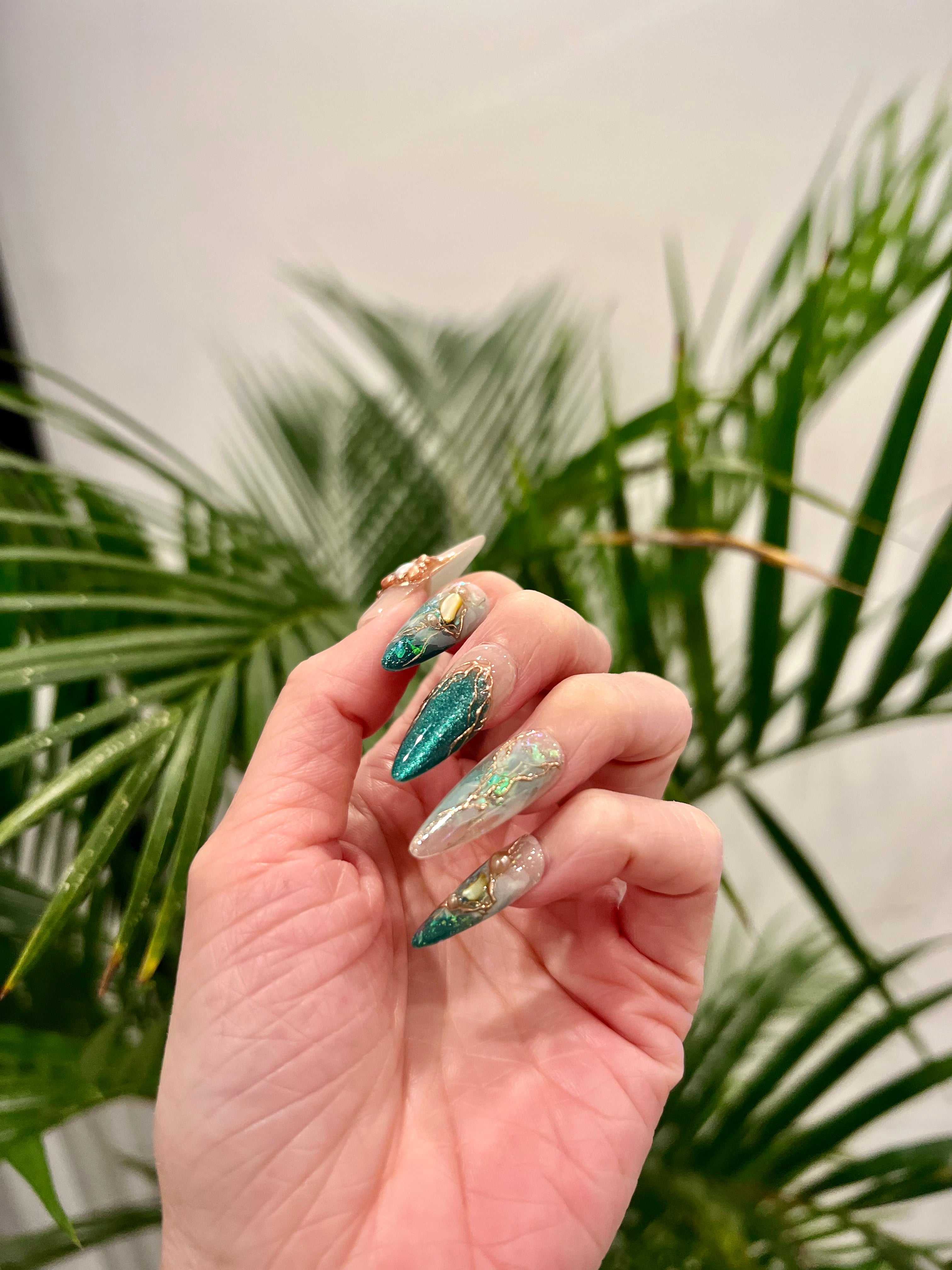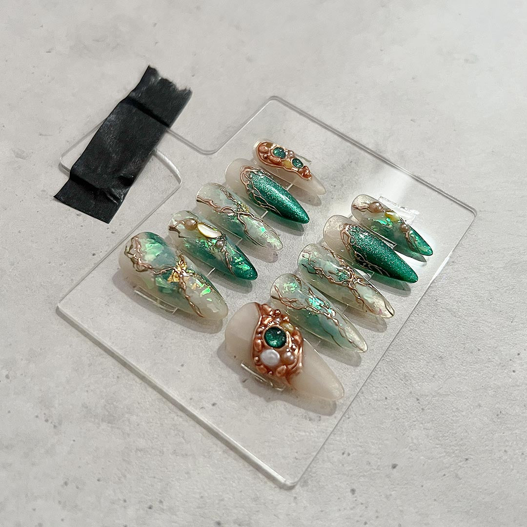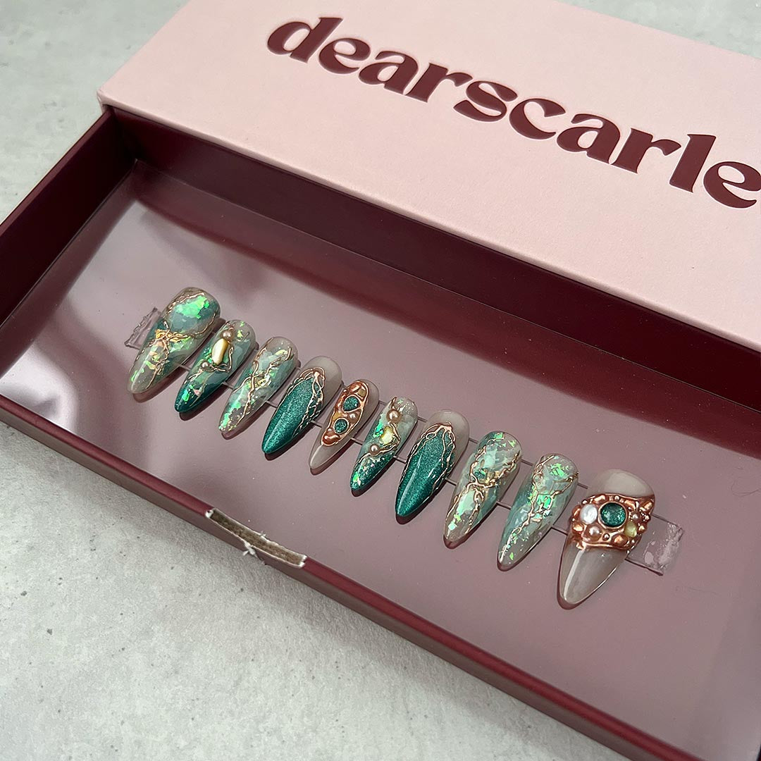 Nail your royal look in emerald, paired with gold and rose gold accents fit for a queen.