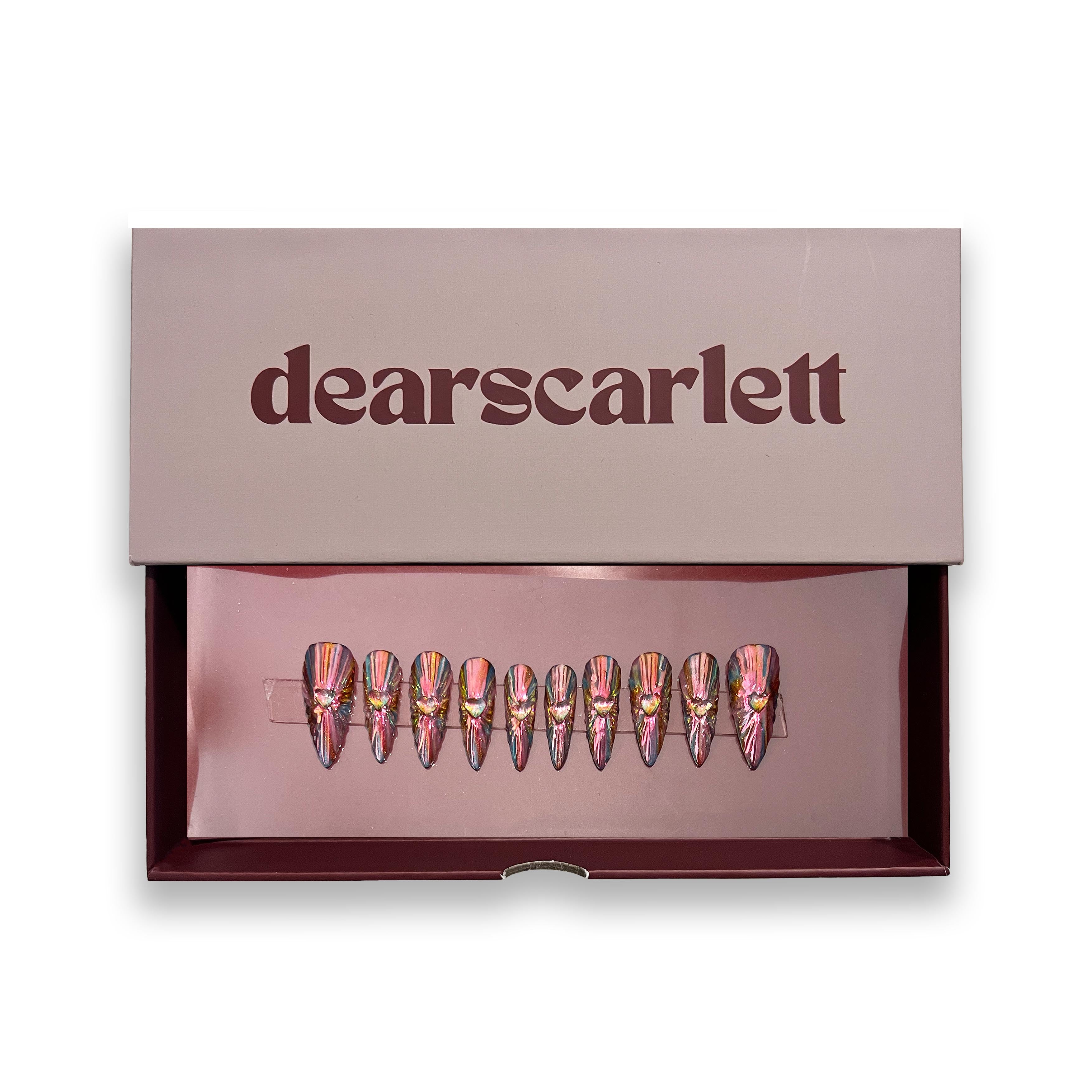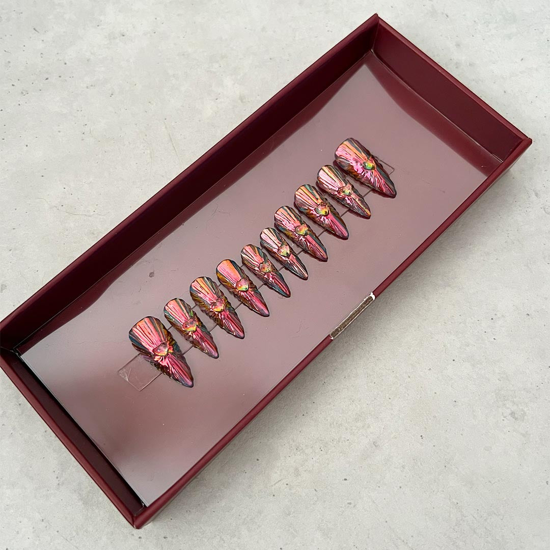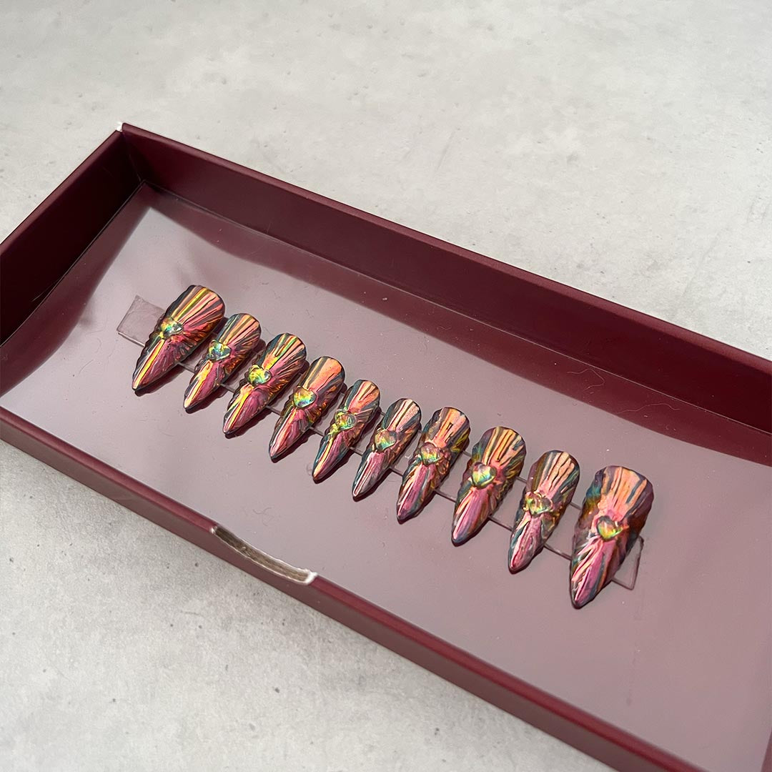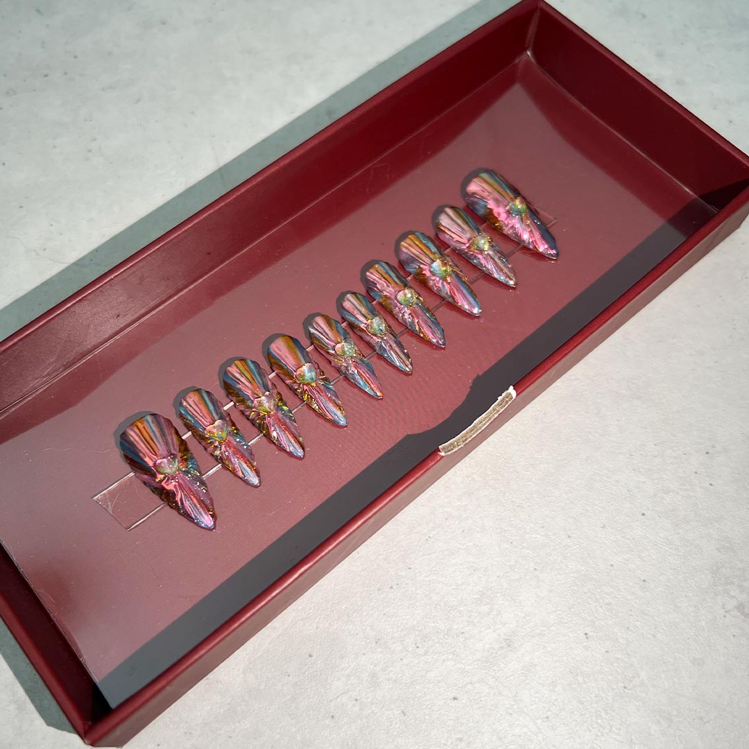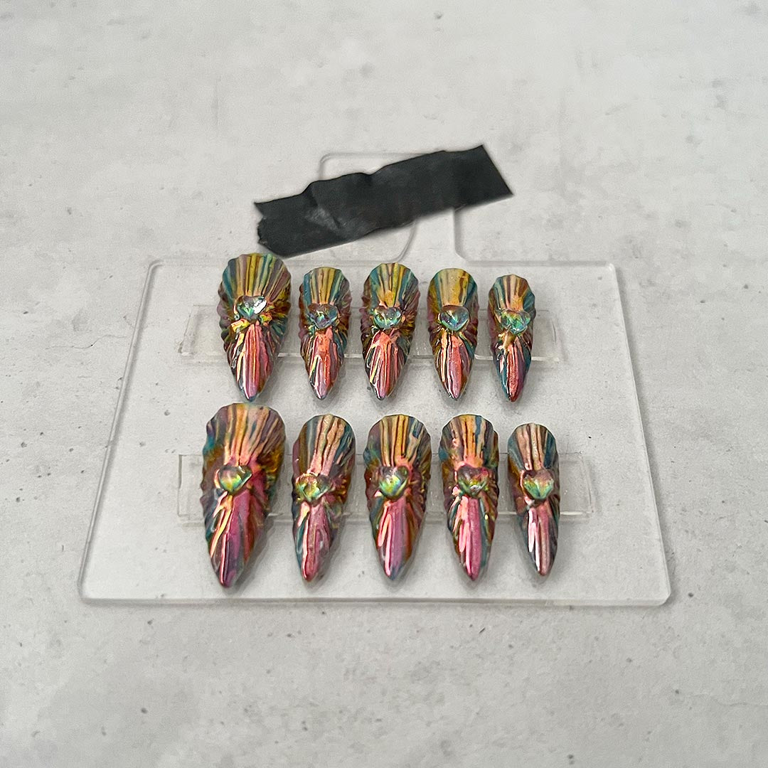 Captivating rainbow of colors with a 3D effect, adding a touch of imaginative depth to your look. Complete with a transparent heart charm in the middle.