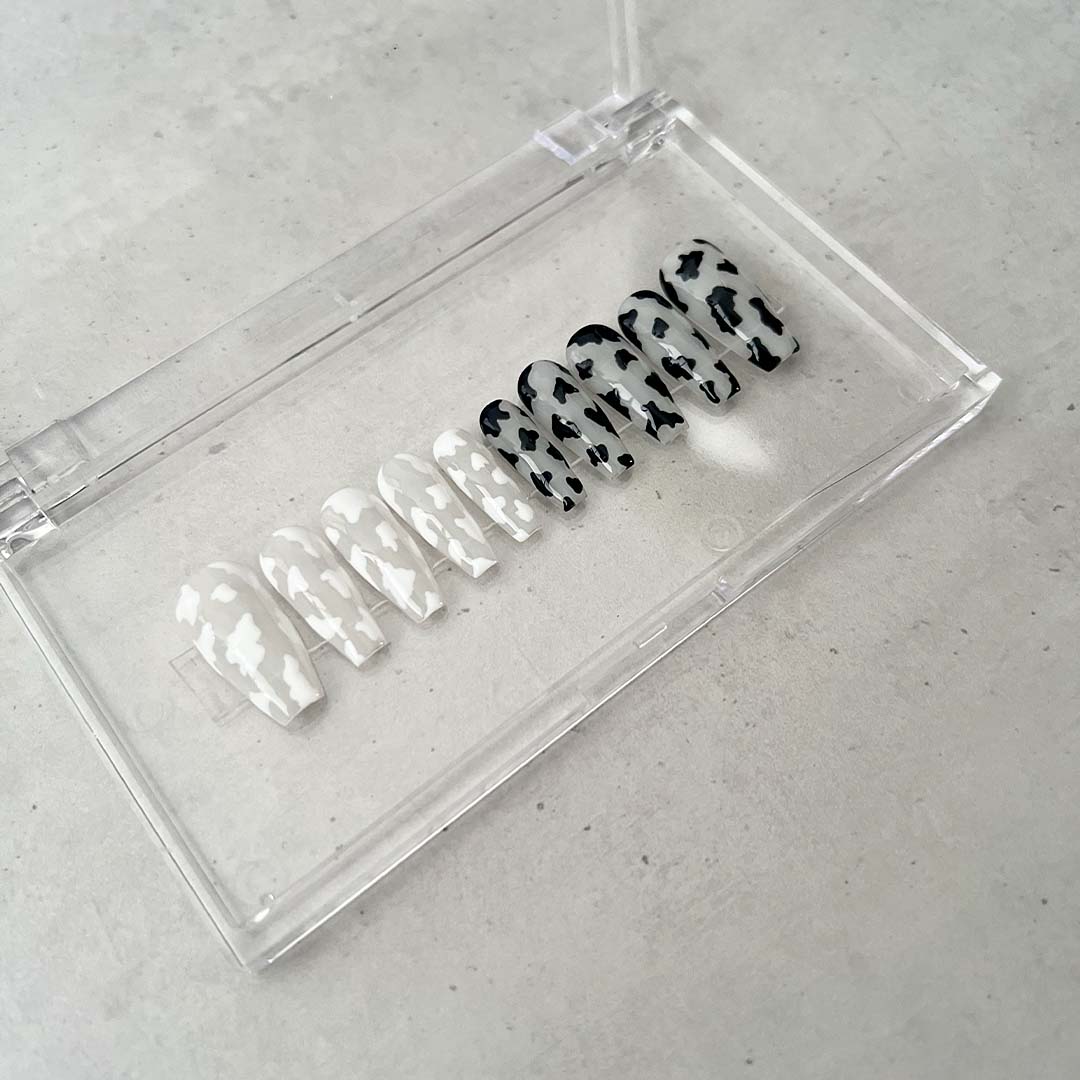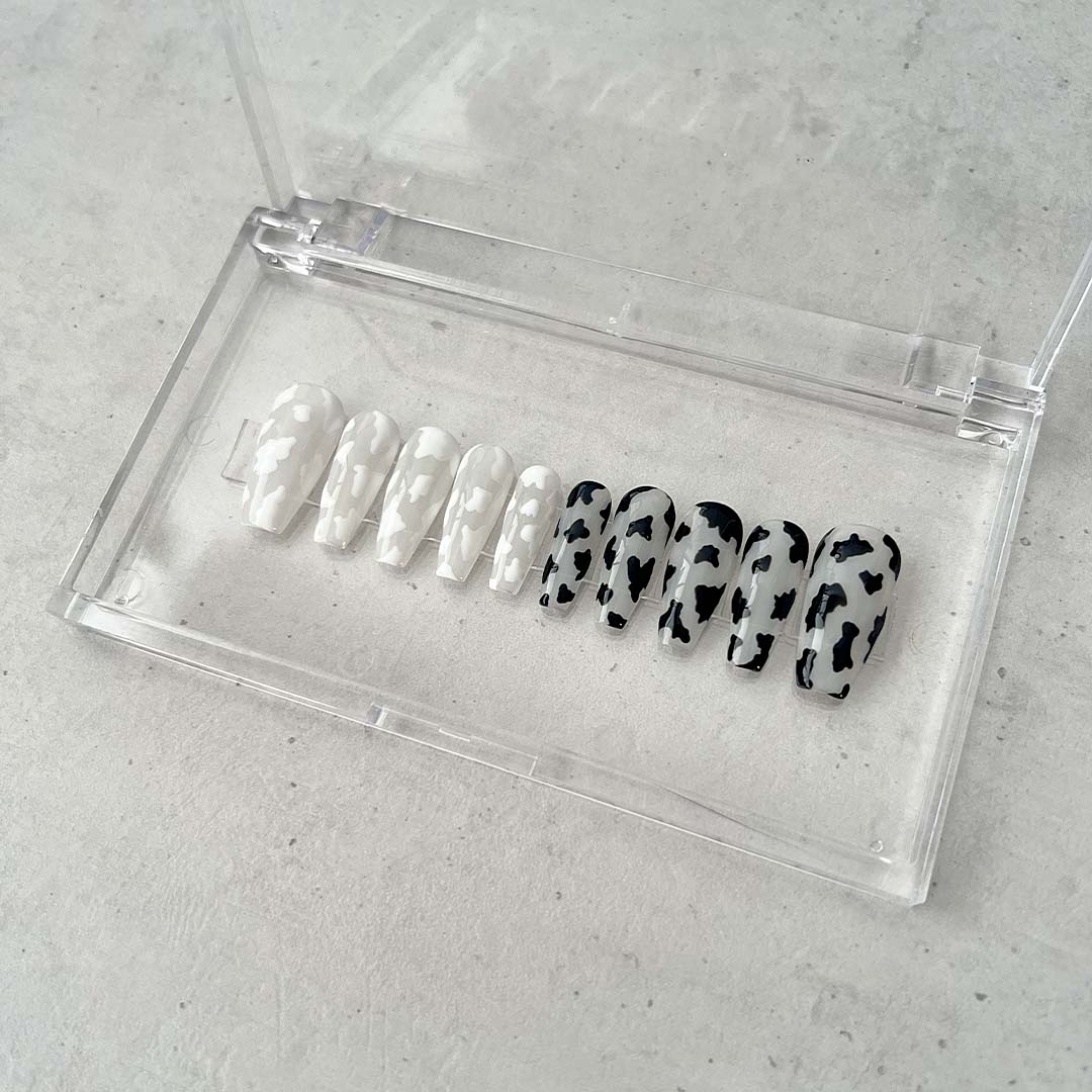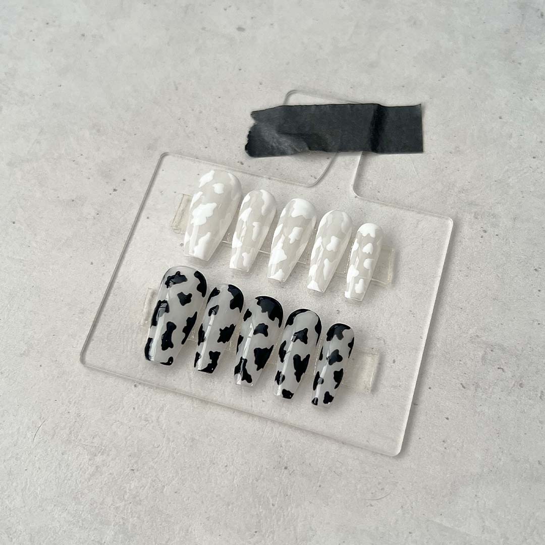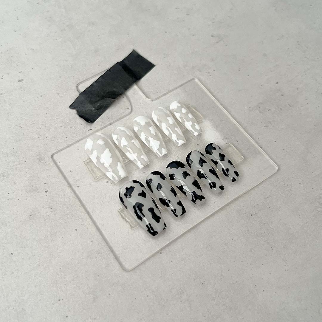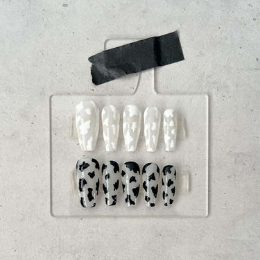 Showcasing an asymmetrical design, hand drawn with one side in sleek black and the other in crisp white. Stand out with edgy, high-contrast style.